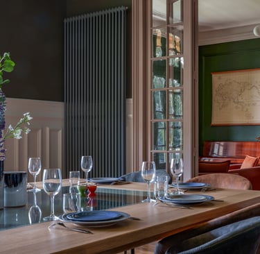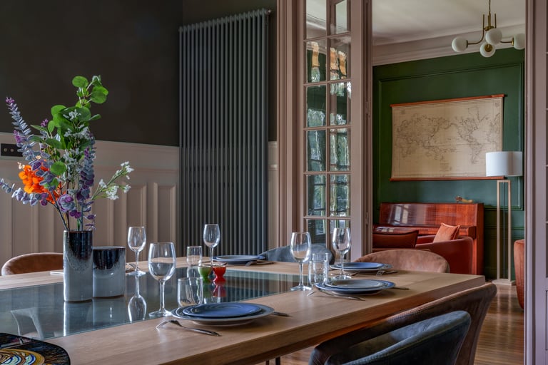 Nous avons voulu prolonger la vocation de cette maison qui, construite en 1906, avait été conçu comme un lieu de villégiature. L'intérieur a entièrement été rénové avec le désir d'allier le confort moderne et les éléments faisant échos au passé. Au cœur d’un parc arboré, la maison est spacieuse et offre un cadre idéal pour un séjour paisible et confortable entre amis ou en famille.